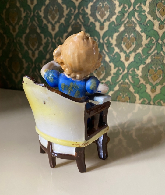 Figuren er 15 cm høy. Det mangler en rød blomst i buketten i pikens hånd og den gjenstående blå har en skade, også blomstene i håret har fått nagg. Skadene påvirker midlertid lite helhetsinntrykket og figuren fremstår ellers å være i pen stand.