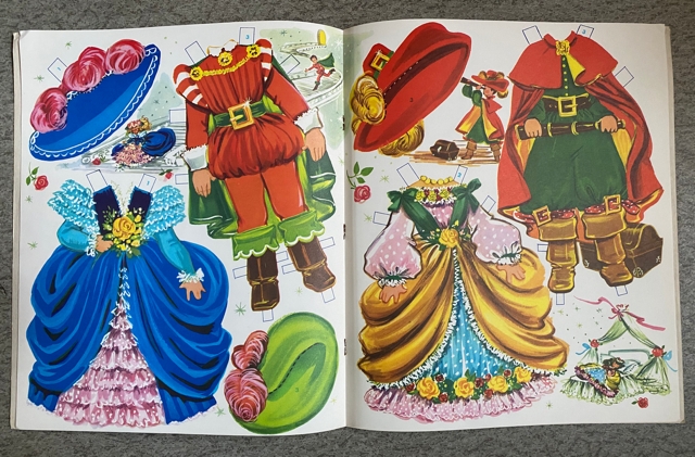Ubrukt hefte med 2 papirdukker og 5 sider fylt med tilhørende klær. Mål hefte ca 31,5x26,5 cm. Det finnes aldersrelatert slitasje/patina på omslag, men hefte fremstår allikevel i flott vintage stand.