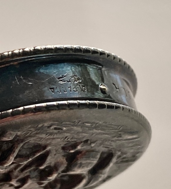 Alder og opprinnelse ukjent. Boksen er upusset, men i flott vintage stand. Diameter ca 3,5 cm.