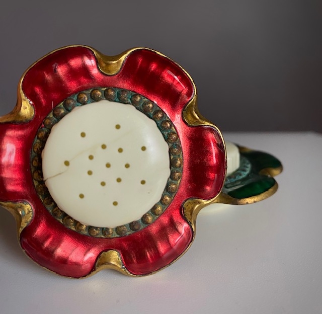 Emaljert antikk salt og pepper bøsser/ kryddersett - Einar Modahl Norge 1920 -1950