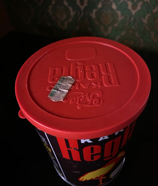 Landhandel Regia KAKAO 400 g blikkboks med lokk Ingen skader, men en godt brukt boks. Mål ca H14,5xØ10,5 cm. Lokket i rød plast har en prislapp fra DOMUS NOK350,00 inkl. mva. På lager: 1 stk. Kjøp Ønskeliste Vipps hurtigkasseKjøp nå med Vipps hurtigkasse Del dette Produktinfo https://no.wikipedia.org/wiki/Domus_Varemagasin Varen kan sendes eller hentes etter avtale på butikklageret i Tysvær NB! man får spørsmål om hente/sending først etter at man har registrert adressen. Fast fraktpris 73 kr for kjøp < 1000 kr og gratis frakt ved kjøp ≥ 1000 kr (Begge alternativene gjelder for forsendelser med vekt 0-10 kg). Har du bestilt, men hører ikke noe i fra meg? Sjekk mappen for søppel/junkmail.