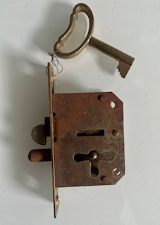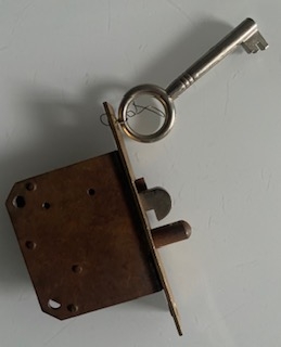 Låsekasse med nøkkel - variant 2 Gammel låsekasse med tilhørende nøkkel til dør- og/ eller kommode. 1950-70 tallet. Ukjent funksjonalitet. NOK200,00 inkl. mva. På lager: 1 stk. Kjøp Ønskeliste Vipps hurtigkasseKjøp nå med Vipps hurtigkasse Del dette