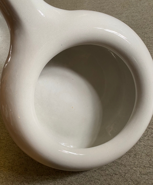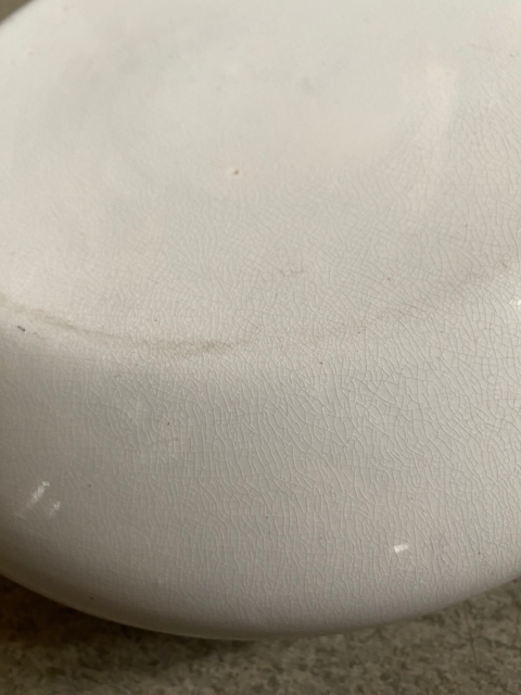"Robust"/ kraftig pussbekken i polert stål og hadde man ikke visst bedre så kunne man ha latt seg overbevise om at det er en "designer" skål" ( ikke designet for puss). Mål ca H4x L25xB16 cm. Ingen skader, men det finnes patina/ bruksmerker.