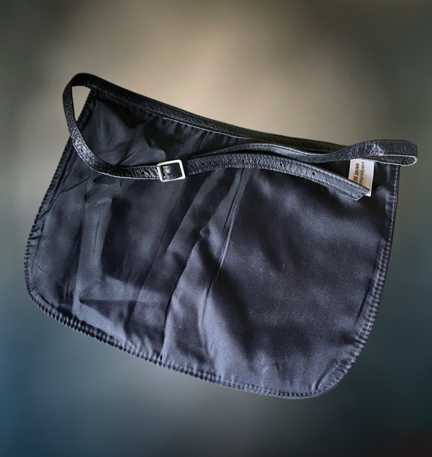 Norskprodusert forkle i mykt/ garvet skinn med lommer. Fungerer også fint som "rumpetaske" til oppbevaring av mobil/ lommebok. Mål "belte" 112cm og forkle 36x26 cm.