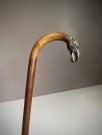 Spaserstokk/ stav i formet/ dreiet tre med elefant ornament håndtak Alder og opphav ukjent. Stokken er utført i lakkert tre med beslag i messing og et håndtak i oksidert metall utformet som en elefant. Ingen merking, men kan være sølv. Detaljrik utførelse. Støttennene ser ut til å være i elfenben. H89 cm. Slitasje/patina NOK1 397,00 inkl. mva. På lager: 1 stk. Kjøp Ønskeliste Vipps hurtigkasseKjøp nå med Vipps hurtigkasse Del dette