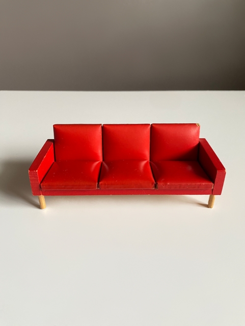 Lundby dukkehus møbler tilbehør 1:18 - Rød skai/ skinn sofa (5148) 1960 tallet