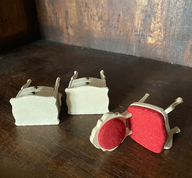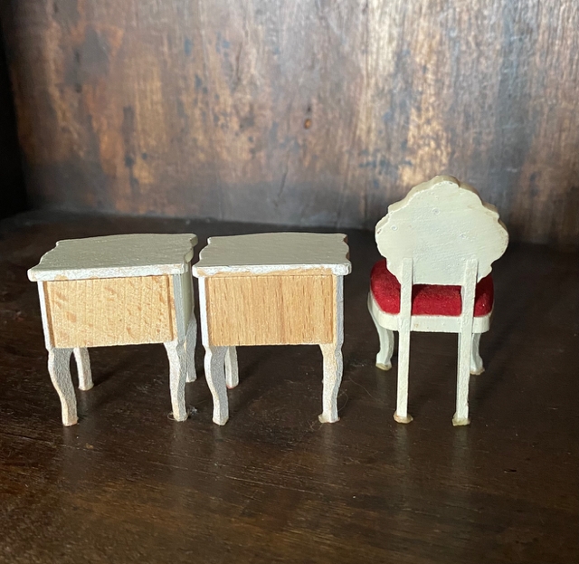 Lundby dukkehus tilbehør 1:18 romantisk rokokkomøbler nattbord/kommode og stol 1950/60-tallet Stol og 2 stk nattbord selges samlet. Alt er i flott vintage stand. NOK125,00 inkl. mva. På lager: 1 stk. Kjøp Ønskeliste Vipps hurtigkasseKjøp nå med Vipps hurtigkasse Del dette Produktinfo http://www.swedish-dollshouses.se/wp-content/uploads/2020/11/lundby-1959.pdf http://www.swedish-dollshouses.se/wp-content/uploads/2020/11/Lundby-1965.pdf Varen kan sendes eller hentes etter avtale på butikklageret i Tysvær NB! man får spørsmål om hente/sending først etter at man har registrert adressen. Fast fraktpris 73 kr for kjøp <1000 kr og gratis frakt ved kjøp ≥1000 kr (Begge alternativene gjelder for forsendelser med vekt 0-10 kg). Har du bestilt, men hører ikke noe i fra meg? Sjekk mappen for uønsket e-post.