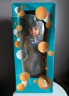 Merknader: Esken har en del slitasje/anmerkninger. Dukken er i særdeles flott/ ubrukt vintage stand og uten anmerkninger.