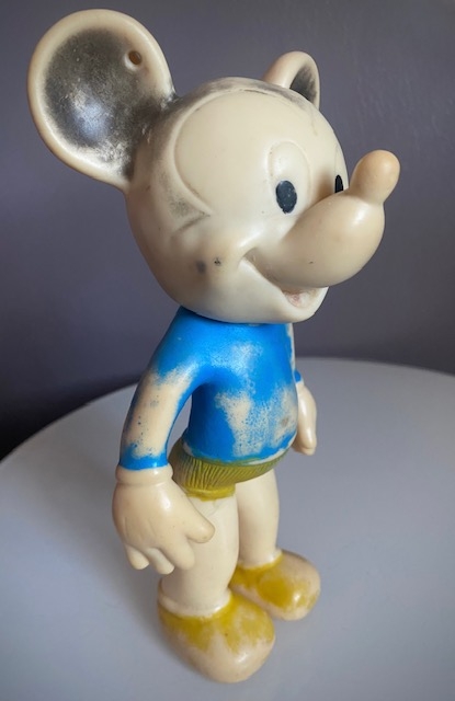 "Minni Mus", gummifigur - Lærdal Stavanger Norge 1957 Minni Mus figur i mykplast produsert ved Tomte småvareindustri. Modellen 741-Minnie Mouse er fra 1957. Mål H19,5x L10x B8 cm. Figuren har ingen skader, men som man ser av bildene er det stor slitasje på den opprinnelige fargen. Betyr lite, flott uansett NOK1 150,00 inkl. mva. På lager: 1 stk. Kjøp Ønskeliste Vipps hurtigkasseKjøp nå med Vipps hurtigkasse Del dette Produktinfo http://tomte-toys.com https://www.stavangermuseum.no/events/det-var-en-gang-en-tresko